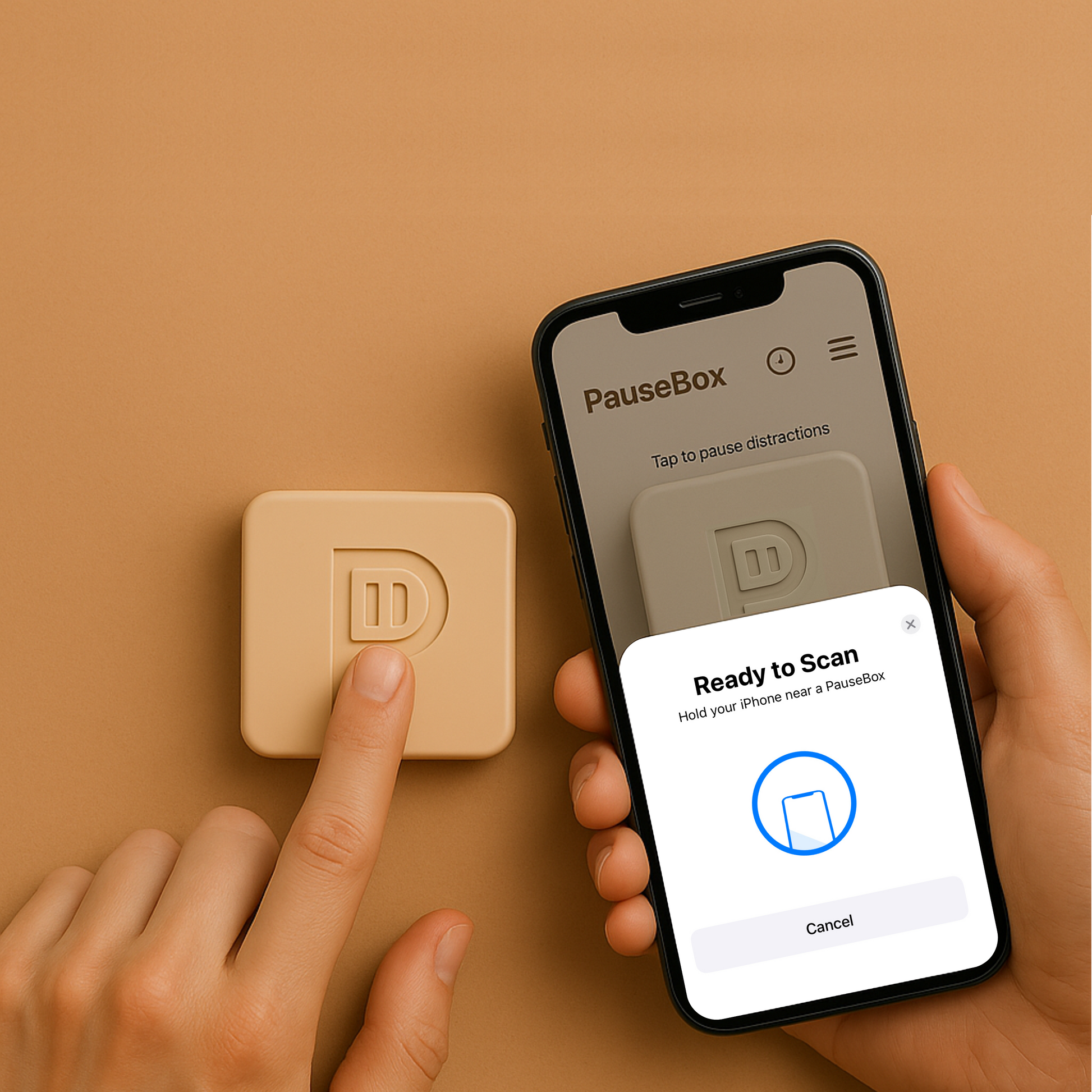 PauseBox is a compact device that helps you reclaim your focus by creating a physical ritual to block digital distractions. Simply tap your phone to the PauseBox to activate a custom app-blocking session—perfect for work, study, meals, or family time.